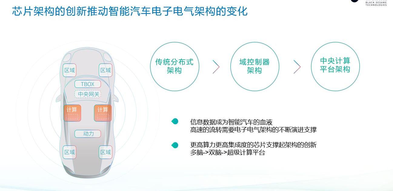 在傳統汽車時代,內燃機和機械系統的進化可以推動整個汽車工業的發展。智能電動時代,整車的芯片份額越來越高,芯片的作用越來越重要。計算迭代和數據創新驅動整個汽車產業進化到智能駕駛時代,電子電氣架構從最初的E/E型轉向功能域控制,最終走向中央計算+區域控制。芯片在這個過程中能起到什么作用?
