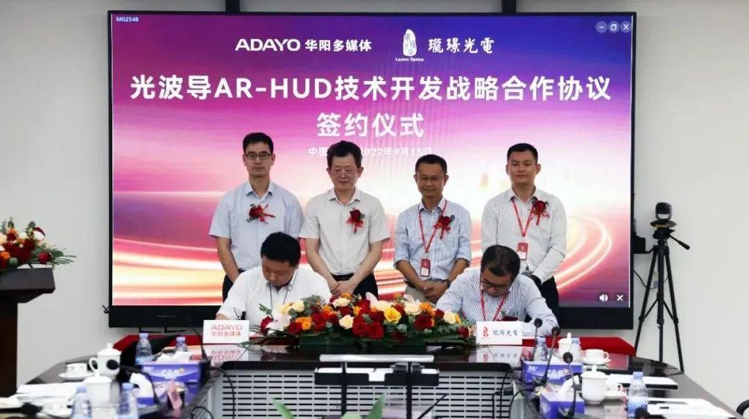 9月15日,ADAYO華陽集團全資子公司惠州華陽多媒體電子有限公司(以下簡稱“華陽多媒體”)與深圳市龍晶光電科技有限公司(以下簡稱“龍晶光電”)在中國惠州舉行光波導AR-HUD技術開發戰略合作協議簽約儀式。華陽多媒體董事長韓、副總經理張、副總經理、龍晶光電董事長、總經理、雙方主要業務負責人參加了簽約儀式。華陽多媒體HUD產品線總監楊靜先生和龍晶光電首席運營官張文勇先生代表雙方簽署了合作協議。