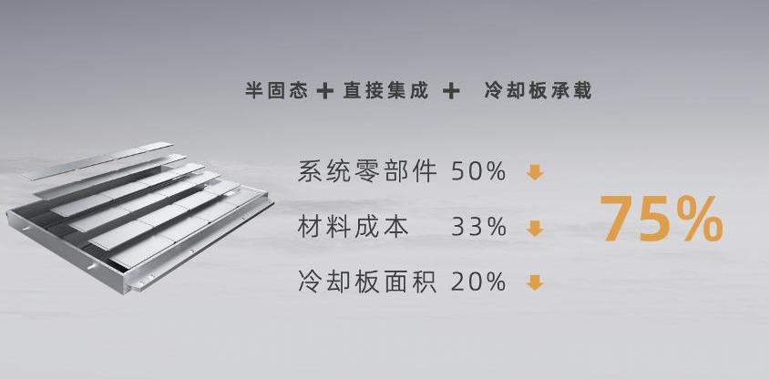在大型柔性電池研制成功的基礎上,SPS大型柔性電池系統可采用高效液冷板和機箱一體化設計,半固態大型柔性電池直接集成到系統機箱中,系統零部件減少50%,材料成本降低33%,體積利用率提高30%至75%。
