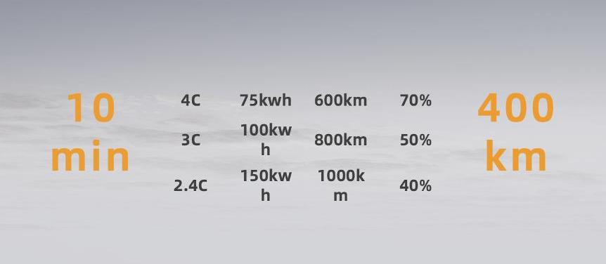 標準底盤,標準快充,適用于所有乘用車。針對未來300-350kW快速充電樁的功率,SPS封裝不同充電速率的軟電池,實現“充電10分鐘,續航400公里”的統一配置,滿足各類用戶的出行和充電需求。福能科技展示了2.4C、3C、4C三種速率的快充芯,分別對應150kWh、100kWh、75kWh的充電容量,對應1000km、800km、600km的續航里程。充電10分鐘,電池可充電40%、50%、70%,分別可實現400km、400km、560km的續航里程。
