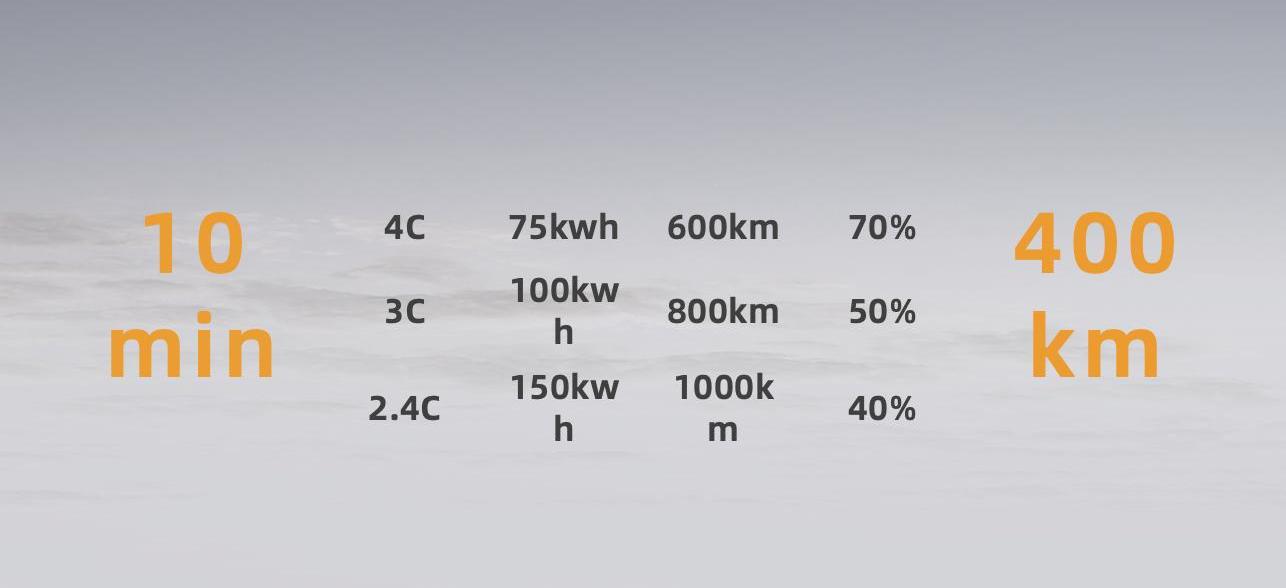 福能科技展示了2.4C、3C、4C三種速率的快充芯,對應150kWh、100kWh、75kWh的充電容量,對應1000km、800km、600km的續航里程。充電10分鐘后,電池可充電40%、50%、70%,分別實現400km、400km、560km的續航里程。