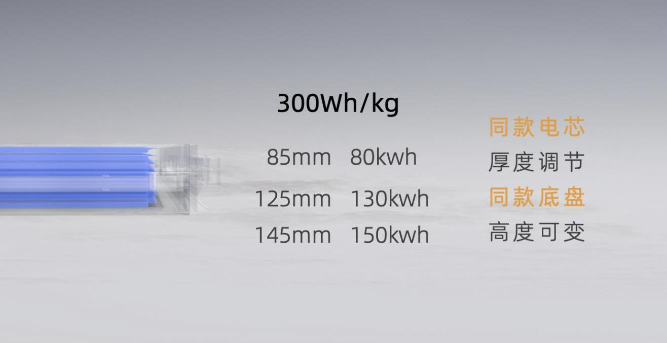 隨著電芯厚度的變化,SPS的底盤高度可在85mm至145mm之間靈活調節,電池系統采用不同能量密度的大型柔性電芯,具有80kWh至150kWh的不同帶容量,滿足了從性能車到城市皮卡的電動化需求,縮短了整車企業客戶新車型的研發周期,在電池、底盤等關鍵零部件上通用,降低采購成本,保證穩定供應。