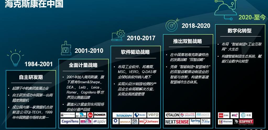 黑克斯康在中國的發展可以分為幾個階段。第一階段是2001-2010年,最主要的是做一些工業儀器,尤其是質量檢測儀器。在此期間,它與幾乎所有的主機廠合作,并提供了大量的質量控制設備。涵蓋從測量室到車間現場的整個測量產品線。