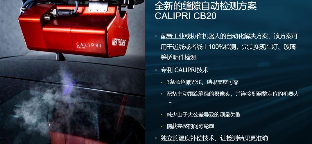此外,海克斯康集團推出了全新的自動裂紋檢測方案CALIPRI CB20,搭載工業或合作機器人自動化解決方案,可用于近線或在線100%檢測,完美實現車燈、玻璃等透明零件的檢測。依靠三條藍色激光線平行掃描,結果可信度高。配備了主動跟蹤間隙的攝像頭,并連接到調整定位的機器人,以減少因公差大而導致的測量失敗。
