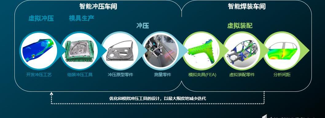 給大家分享一個Heicks Kang推出的從沖壓到焊接的全新智能制造方案,國內至今沒有使用過。最重要的是車身的沖壓和焊接。通過連接工程工具和流程的協同工程系統、無縫數據交換和自動化工作流,從沖壓到焊接的新型智能制造方案實現了物理世界和虛擬世界的鏈接。傳統上,沖壓焊接的核心工藝更多依靠人工調試和人工參與測試。我們方案最大的特點就是盡可能的使用仿真軟件和儀器,減少交互過程中的試錯過程。