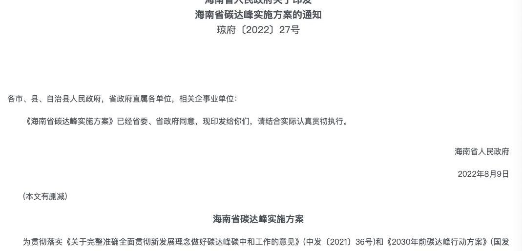 1900/1/1 0:00:008月22日,海南省人民政府發布了海南省碳達峰實施方案的通知,其中提到,到2030年,全島全面禁止銷售燃油汽車。
