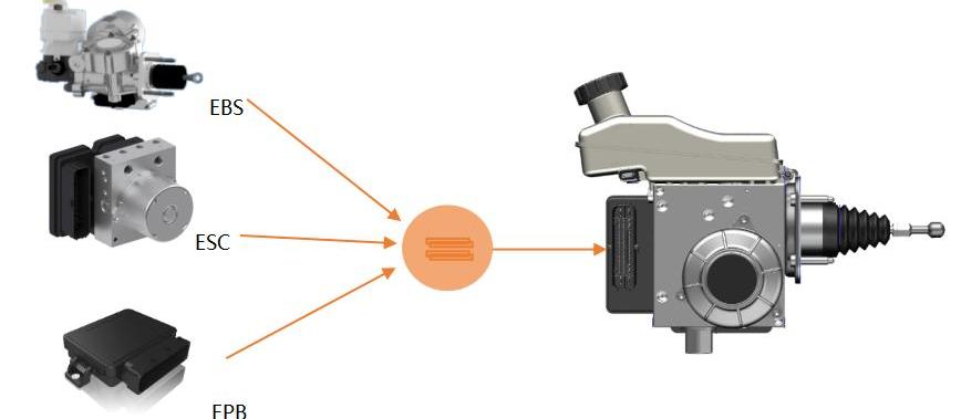 聯創汽車電子在不到兩年的時間里成功研發出集成線控制動系統IEB,目前已經進入工程驗證階段。該產品符合國際一流標準,整合優化了車輛底盤制動控制的三大系統,即電子助力制動控制系統EBS、電子穩定控制系統ESC和電子駐車控制系統EPB,可同時支持行車制動、緊急制動、駐車制動和車輛穩定控制的功能需求。