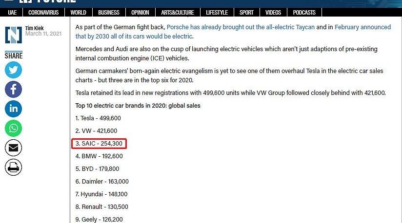 此前,SAIC乘用車已經連續七年蟬聯單品牌出口冠軍。SAIC乘用車之所以能在海外市場取得銷量和口碑的雙豐收,與全球化經營戰略的穩步推進密不可分。鑒于不同國家和地區的汽車偏好,SAIC乘用車也依靠領先的技術優勢打造差異化競爭力。在新興市場,SAIC乘用車專注智能網聯技術,“i-Smart”智能網聯系統已安裝在海外車型上,深受印度、東盟等國家和地區消費者的追捧。在成熟市場,SAIC乘用車以新能源汽車為突破點,產品銷量位居英、荷、挪等歐洲國家前列,車型還獲得了比利時汽車協會(VAB)頒發的“年度最佳家用電動車車型”獎。SAIC乘用車的海外銷售幫助SAIC集團在2020年純電動汽車全球銷量突破25萬輛大關。據中東媒體機構《國家報》報道,2020年SAIC純電動汽車銷量位居世界第三。