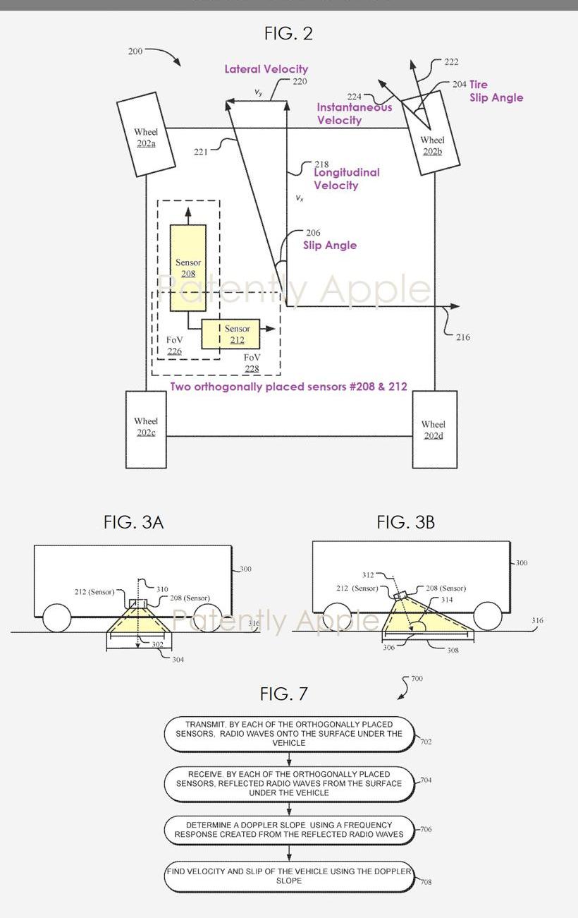 這項技術專利由一組傳感器組成。在一個示例中,一個或多個正交布置的傳感器將安裝在車輛下方,其可用于檢測行駛道路或其視野內的車輛的其他表面。傳感器信息可用于計算車輛側滑角。在許多情況下,傳感器可以是天線陣列或超聲波傳感器。