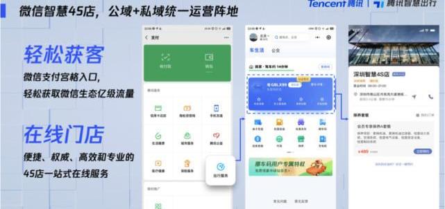 微信智慧4S店是騰訊汽車云打造的公共領域和私有領域統一運營陣地。它以微信支付中的“出行服務”為入口,引入公共域流量,讓更多的用車服務簡單呈現在車主面前。同時還包括直連4S店鋪的維護服務,幫助店鋪建立更專業的C端窗口,輕松獲取微信生態億級流量。未來還將擴展到售前服務和私域運營,方便用戶更便捷地觸達門店端的專業服務。