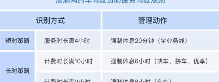 在……之間em,短期策略要求,如果所有滴滴網約車司機的服務時間(司機接單到訂單結束的所有時間)累計達到4小時,且其間一次性休息時間小于20分鐘,則需要下線20分鐘后才能再次接單。長期策略要求司機達到一定充電時間后休息6小時(乘客點擊上車到充電結束的所有時間),根據不同業務線的特點不同。