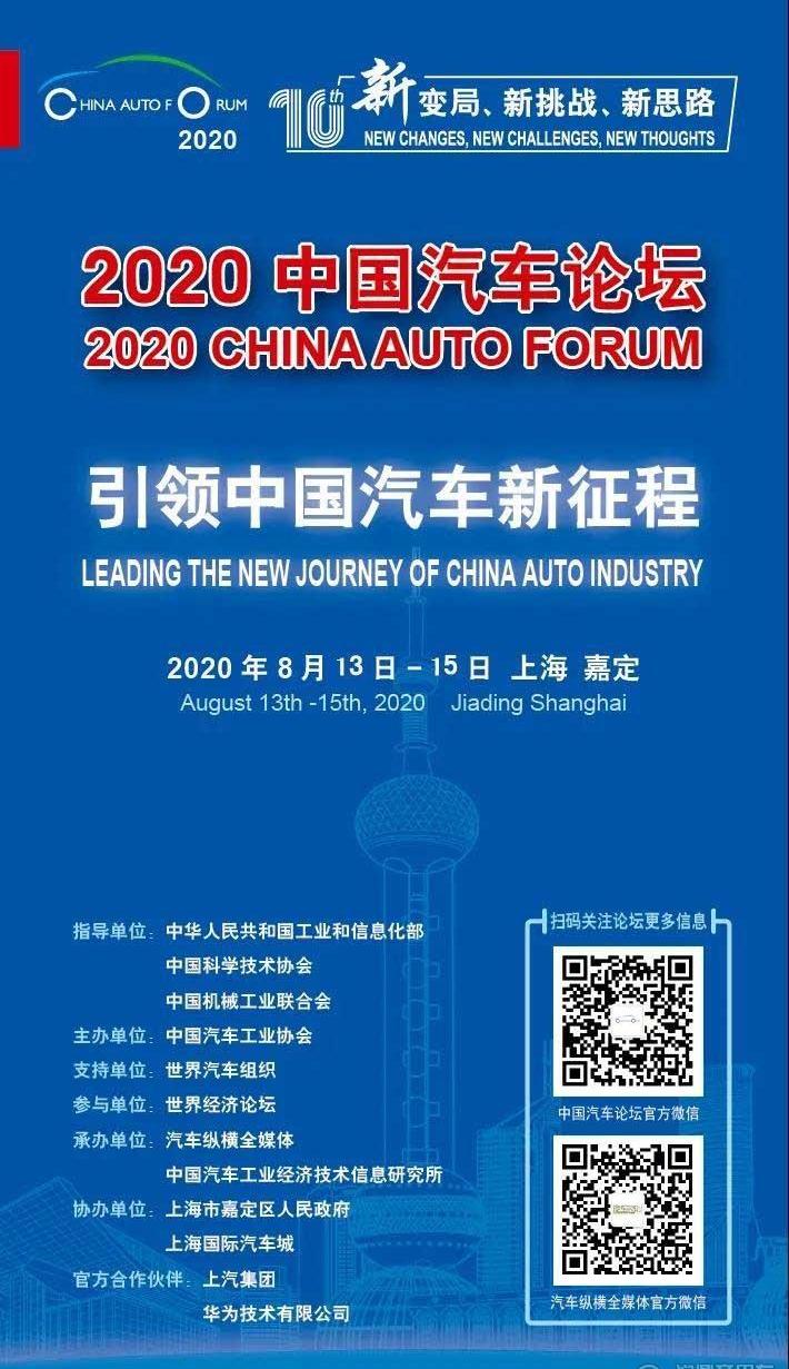 亮點三:跨界合作伙伴攜手未來,引領行業開放融合新生態。本次論壇的官方合作伙伴SAIC和華為技術有限公司將為整個論壇提供大力支持。SAIC是目前中國最大的汽車集團,也是中國a股市場最大的汽車上市公司。2019年,在第八屆董事會第五次會議上……汽車制造商協會推薦SAIC為第九屆理事會主席候選人。華為技術有限公司是全球領先的ICT(信息與通信)基礎設施和智能終端提供商,也是中國汽車論壇歷史上首個引入的跨界企業官方合作伙伴,彰顯了汽車產業升級轉型時期開放融合的合作新生態。上海市嘉定區政府對本次論壇給予了全方位的支持。作為協辦單位,上海國際汽車城正積極打造世界級汽車產業中心,全方位深度布局汽車“新四化”。此外,本次論壇還將匯聚工業數字化、汽車金融、咨詢公司、新材料企業等汽車相關領域的跨界合作伙伴。屆時,中國汽車論壇主辦方及其合作伙伴將以開放的姿態歡迎論壇各方嘉賓。2020中國汽車論壇官網于6月20日正式上線,報名系統開放報名,為關注汽車行業的公眾開放了多個報名通道,包括手機站入口、論壇官網入口、協會官網入口、汽車縱橫網入口、論壇微信官方賬號入口、微站入口。據柳巖介紹,自報名系統開通以來,公眾報名踴躍,今年有望超過歷史最高報名人數。柳巖表示:“中國汽車工業協會作為行業組織,希望借助中國汽車論壇這一頂級平臺,攜手汽車及相關企業、媒體朋友、行業精英,共同為中國汽車高質量發展貢獻力量,助力中國汽車邁入新征程。”附,2020中國汽車論壇會議方案一、組織框架:工業和信息化部、中國科學技術協會、中國機械工業聯合會主辦單位:中國汽車工業協會支持單位:世界汽車組織()、世界經濟論壇()承辦單位:汽車縱橫傳媒、中國汽車工業經濟技術信息研究院協辦單位:上海市嘉定區人民政府安亭上海國際汽車城官方合作伙伴:華為技術有限公司名譽董事長:全。全國政協副主席、中國科協主席萬鋼主席:常務副會長兼秘書長傅;中國汽車工業協會副秘書長劉燕兒;會議議程:8月13日08: 30-12: 00第十屆峰會8月13日15:00-18:30閉門峰會8月14日08:30-12:00。14:00-18:00[主題論壇1]全球汽車技術發展領袖峰會[主題論壇2]提升中國汽車品牌競爭力[主題論壇3]十五期間中國主流汽車集團發展戰略與展望[主題論壇4]氫能產業發展與燃料電池技術創新論壇8月15日, 08:30-12:00[主題論壇五]推進新能源汽車市場化[主題論壇六]智能網聯汽車創新發展與產業生態升級[主題論壇七]中國汽車產業全球化之路[主題論壇八]網上車市科技品牌營銷論壇網站報名、微信報名平臺已開通。 歡迎報名咨詢。更多精彩熱點及演講嘉賓,請關注中國汽車工業協會官網(www.caam.org.cn)、中國汽車論壇官網(www.chinaautoforum.cn)、中國汽車論壇ChinaAutoForum。