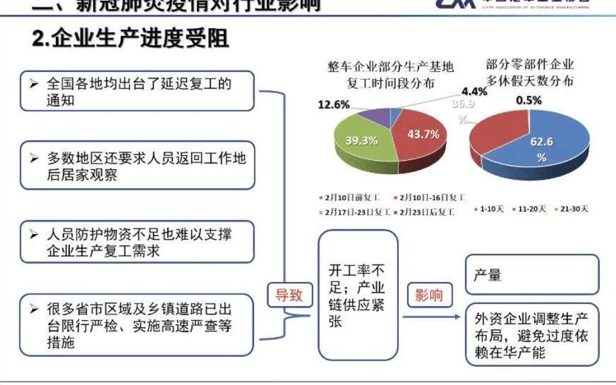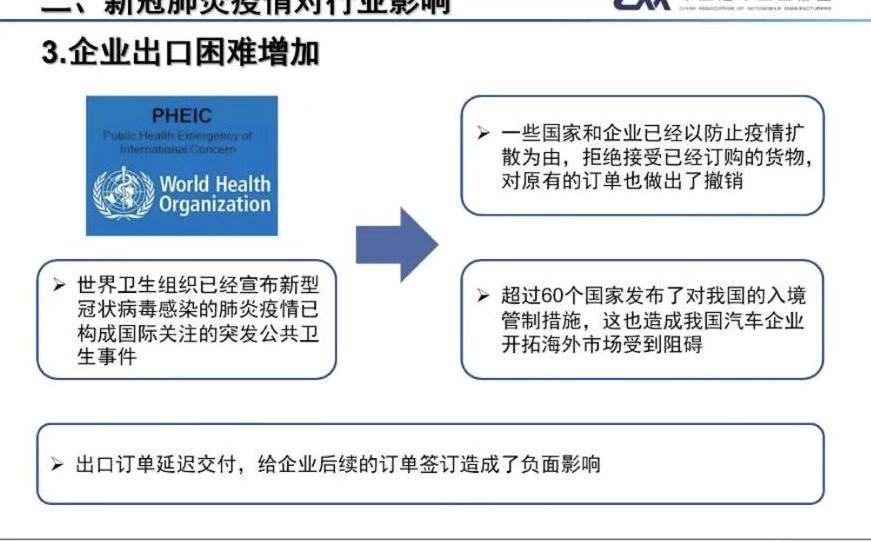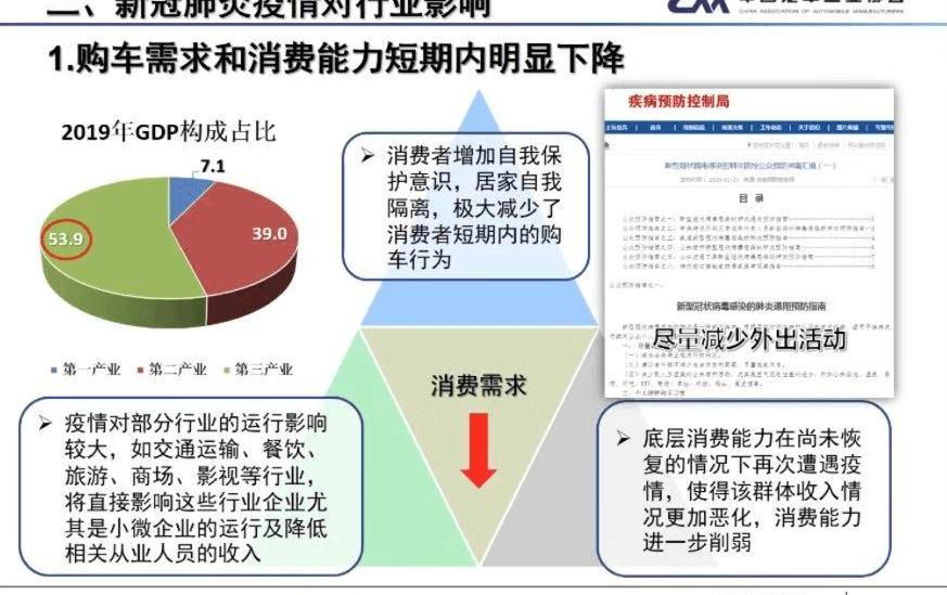 中汽協預計,新冠肺炎疫情將對一季度汽車行業運行產生較大影響,行業產銷量將明顯下降。疫情過后,被抑制的消費需求將在短時間內釋放,汽車市場將迎來短暫的消費高峰。全年將呈現前低后高的走勢,但全年車市發展形勢依然不容樂觀。2月13日下午,中汽協召開線上月度信息發布會。會議內容包括2020年1月產銷數據發布、新冠肺炎疫情分析、市場后續走勢研判等。中汽協副總工程師徐海東、中汽協副秘書長史建華、中汽協副秘書長陳世華出席發布會。產銷數據:2020年1月,根據中汽協重點企業集團統計數據,預計汽車產銷分別完成178.3萬輛和194.1萬輛,環比下降33.5%和27%,同比下降24.6%和18%。由于今年春節假期在1月,有效工作日為17天,比去年少了5天。此外,考慮到一些單位提前放假,有效工作日減少是主要原因……今年一月份他的產量和銷售量都下降了。新能源汽車方面,同比呈現大幅下滑。2020年1月,新能源產銷量預計分別為4萬輛和4.4萬輛,同比分別下降55.4%和54.4%。其中,乘用車產銷預計分別為3.5萬輛和3.9萬輛,同比分別下降56.3%和54.5%。商用車產銷預計達到5000輛,同比分別下降37.4%和51.7%。新能源汽車產銷量大幅下滑的原因,一方面是有效工作日減少,另一方面也與政策有關,企業生產節奏不夠均衡。新冠肺炎疫情對行業的影響:根據中汽協采訪的300多家汽車及零部件企業反饋信息綜合分析,本次疫情對中國經濟的短期影響大于2003年的非典,對原本處于調整期的汽車行業影響較大,但不會改變長期增長和穩定發展的趨勢,中國經濟增長的基本面將得到維護。1.購車需求和消費能力短期內明顯下降。