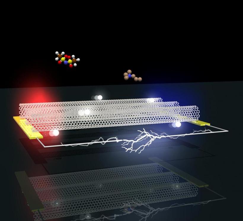 據國外媒體報道,日本東京都市大學(2020年4月起更名為東京都市大學)的科學家用排列整齊的“金屬”碳納米管制成了一種器件(熱電器件),可以將熱能轉化為電能,輸出功率高于純半導體碳納米管(CNT)隨機網絡制成的器件。這種新設備不需要平衡半導體的電導率和電壓,比同類產品好很多,而且大功率熱電器件可以為更有效地利用余熱鋪平道路。