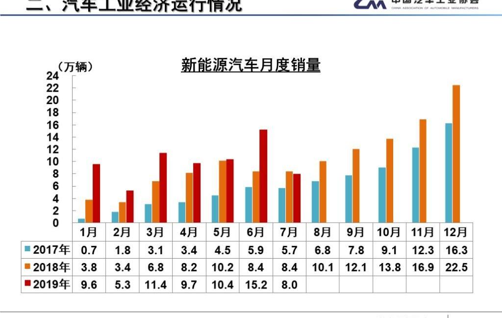 1900/1/1 0:00:001、中汽協:7月新能源汽車銷售8萬輛,同比下降478月12日,中國汽車工業協會發布7月產銷數據,新能源汽車方面,今年7月,新能源汽車產銷完成84萬輛和80萬輛,環比下降372和47
