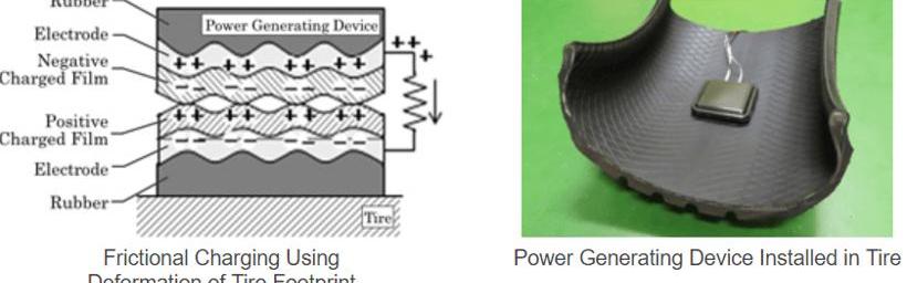 (圖片來源:住友橡膠官網)住友橡膠通過在輪胎內部安裝發電裝置(能量采集器),將輪胎內部產生的靜電轉化為清潔能源。該裝置有兩層橡膠,每層橡膠覆蓋一個電極,并與一層帶負電的薄膜相連,該薄膜與一層帶正電的薄膜相連。當輪胎在地面上滾動時,表面會變形,產生一種叫做摩擦電的靜電。這項技術可以成為各種汽車數字工具(汽車附件)的動力源,將具有巨大的實際應用潛力。住友橡膠推出“智能輪胎概念”,開發新的輪胎技術概念,以應對汽車行業目前面臨的“更高的安全性能”和“更好的環境效益”的挑戰。此外,這項新技術可以成為TPMS(胎壓監測系統)等汽車傳感器和其他汽車設備的電源,使汽車可以在沒有電池的情況下使用各種數字工具。早在2015年,威斯康星大學麥迪遜分校的研究團隊就在開發一種類似的技術,可以利用輪胎的摩擦力為玩具吉普車的前燈提供動力。據外媒報道,日本輪胎制造商住友橡膠工業有限公司(Sumitomo Rubber Industries,Ltd)與日本關西大學教授谷浩史(Hiroshi Tani)合作,開發了一種可以利用輪胎旋轉發電的新技術。
