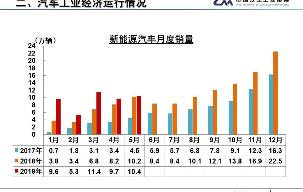 中汽協秘書長助理徐海東表示,新能源汽車增速下降,主要是因為新能源商用車尤其是客車的產銷在補貼過渡期結束前提前釋放,導致本月大幅下降。目前汽車行業出現結構調整,自主品牌車企要堅守品牌,守住價格,保證可持續發展。6月12日,中汽協發布了2019年5月汽車行業產銷數據。5月份,汽車行業產銷整體下行趨勢仍未得到有效緩解,產銷同比降幅有所擴大,產銷分別完成184.8萬輛和191.3萬輛,比上月分別下降9.9%和3.4%,比去年同期分別下降21.2%和16.4%,分別提高6.7和1.8個百分點。2019年1-5月,汽車產銷分別完成1023.7萬輛和1026.6萬輛,均比上年同期下降13%,降幅分別比1-4月擴大2個和0.8個百分點。