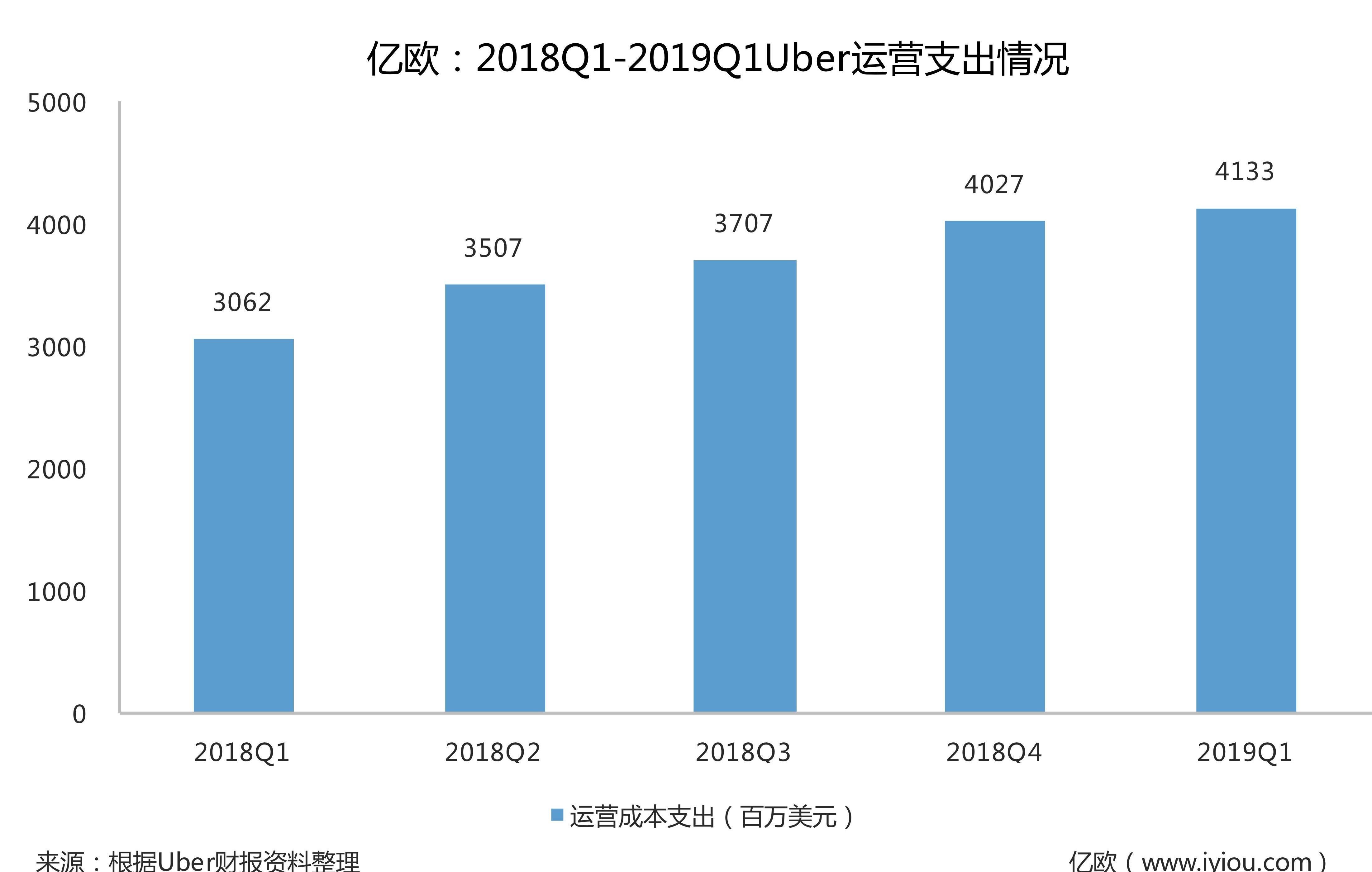 據億歐汽車介紹,優步的成本支出主要包括以下幾個方面,其中營收成本為16.81億美元,高于去年同期的11.56億美元;運營和支持支出為4.34億美元,高于去年同期的3.72億美元;銷售和營銷支出為10.4億美元,高于去年同期的6.77億美元;研發支出為4.09億美元,高于去年同期的3.4億美元;總務和行政費用為4.23億美元,低于去年同期的4.29億美元;虧損和攤銷被指出為1.46億美元,高于去年同期的8800萬美元。數據顯示,在成本支出方面,優步2019Q1各方面的支出均高于去年同期,除了一般和行政支出。其中,對司機的激勵以及提供給消費者的折扣、促銷、返現等費用占了大部分。