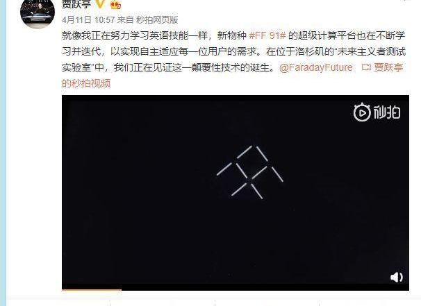 今日,樂視網再次發布一季報,樂視網實現營收1.29億元,較去年同期下降70.54%;凈利潤虧損1.77億元,同比下降42.26%。如果2019年繼續虧損,樂視將面臨退市風險。如果2019年凈利潤能為正,凈資產能為正,那么樂視網還是可以申請恢復上市的。賈躍亭在干什么?賈躍亭飛到美國已經快兩年了。正在接受調查的賈躍亭似乎還在美國忙著造車。雖然經常被報道造車資金鏈有問題,也有與恒大集團合作和分手的需要,但從賈躍亭最新的微博來看,他還在忙著造車,2017年7月飛往美國。至今沒有回國的跡象。賈躍亭的最新微博,發布于4月11日,依然是他關于造車的信息。
