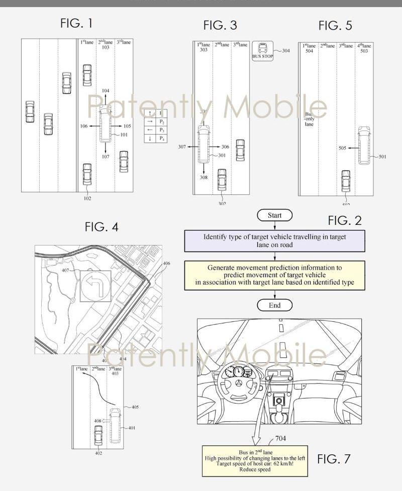 據外媒報道,本月,三星在歐洲發布了一項專利,透露了該公司在汽車方面的努力。更具體地說,三星的發明涉及一種為自動駕駛汽車開發的運動預測系統。三星在專利中聲明,為了改變車道,自動駕駛汽車必須首先評估道路附近車輛的速度和運動。為了確定附近車輛的運動,可能需要獲取附近車輛的相關信息,例如傳感器信息、方向指示器、附近車輛的航向角方向以及附近車輛的運動軌跡。例如,當自動駕駛汽車想要直行,駛入左側車道或右側車道時,可能需要了解附近車輛的速度以及附近車輛駛入左右車道的意圖。在這種情況下,可以通過識別附近車輛的航向角或方向指示器的移動來理解意圖。當附近車輛突然變道或急劇減速時,自動駕駛車輛將難以應對,可能導致事故發生。因此,需要獲得準確無誤的信息來預測車輛的運動,這也是三星發明專利的目的。三星發明的第一部分提供了一種車輛運動預測方法,包括確定目標車道上的目標車輛的類型,以及基于目標車輛的類型預測目標車輛的運動以生成運動預測信息,其中目標車輛的運動與目標車道相關。三星發明的第二部分提供了一種車輛運動預測裝置,其包括配置的處理器,該處理器可以識別目標車道上的目標車輛的類型,基于目標車輛的類型預測目標車輛的運動,并生成運動預測信息。這項專利申請記錄了公交車、出租車、垃圾車等車輛的運動預測,這些車輛都有不同的可變因素。例如,對于公交車,運動預測方法必須能夠理解公交車將停止并突然恢復交通,同樣的原理也可以應用于出租車。三星發明的第三部分提供了一種車輛運動預測設備,其包括一個或多個配置的傳感器和配置的處理器。傳感器可以檢測平視顯示器(HUD)中目標車輛的相關信息,處理器可以用來識別目標車輛。三星的車輛運動預測方法可以理解各種車輛的行為模式,包括汽車、卡車、拖拉機、滑板車、摩托車、自行車、兩棲車輛、雪地車、船舶、公共交通工具、公共汽車、單軌鐵路、火車、有軌電車、自動駕駛或自動駕駛車輛、智能車輛、無人駕駛車輛、無人機、電動車輛(EV)、混合動力車輛和智能移動。以下專利圖1、2、3、4、5、6、7與自動駕駛汽車相關。這項專利可以預測公交站和出站,了解公交路線和車道變化,了解公交車在特定路段會做出可預測的變化,等等。