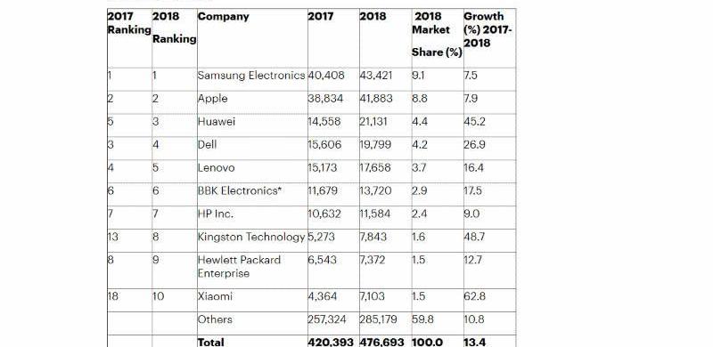 Gartner表示,2018年,華為在半導體上的支出超過210億美元,在全球芯片買家名單上領先于戴爾。數據顯示,作為個人電腦制造商,戴爾去年的芯片購買量飆升了27%。