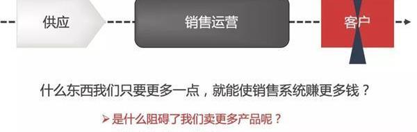e與此有關。這既是壞消息也是好消息。所謂壞消息,是因為目前經銷商業績的懸崖式下滑是這種惡性循環的結果;所謂的好消息是,惡性循環也可以成為我改進的起點。只要我找到一個與當前商業環境相對應的商業策略,我就可能將惡性循環轉變為良性循環。5.從“自行車利潤最大化”到“流動性管理”,汽車經銷商的新轉型戰略。對于中國汽車行業的從業者來說,汽車行業是一個年輕的行業。但從全球來看,汽車產業是工業化時代的明珠,是一個已經接近百年的產業。事實上,這個行業并不那么年輕。這一概念也適用于汽車經銷商行業。在中國,汽車經銷商是一個新行業,成立才20年左右(所以大多數管理者都會根據自己的知識和經驗探索各種管理方法),這當然是好的。但筆者認為這個問題還有另一面:汽車經銷商行業屬于流通行業(行業協會的名稱也給了我們明顯的暗示),流通行業甚至比汽車行業還要古老,而流通行業的本質就是流動性!因此,對于汽車經銷商的經營而言,回歸以流動性為基礎的管理理念和方法,符合行業發展的基本特征。你可能會感到困惑:我們所經歷的20年真的與行業管理的本質相悖嗎?事實并非如此。隨著該行業的快速增長,整體供應量小于需求量。整個行業最大的問題不是汽車賣不出去,而是汽車供不應求。在這種商業環境下,車輛在獲得時可以快速銷售,而市場需求本身已經成為刺激流動性的無形之手。因此,此時,在沒有運營商過度努力的情況下實現了高速流通,而不是說流動性不存在。6.是什么限制了汽車經銷商的流動性?企業是一個系統。對于系統來說,瓶頸決定了企業的產出速度,也就是說瓶頸決定了公司的流動性。這意味著我們只需要找到汽車經銷商的瓶頸,就可以探索汽車經銷商流動性的決定因素。那么,汽車經銷商經營的瓶頸是什么呢?根據TOC的系統分析方法,經銷商的運營可以分為三個簡單的過程:采購、銷售運營和客戶,如下圖所示: