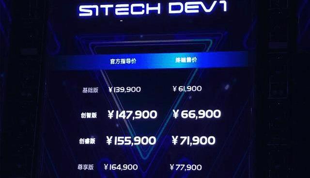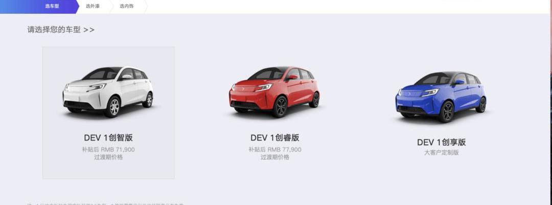 新特汽車官網顯示的DEV 1的最新售價(過渡價)。