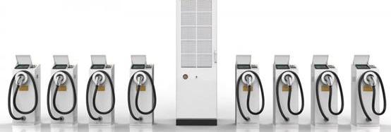 L快速充電→ 充電功率高達480kW,充電5分鐘,電池續航50公里;L占地面積小→2個充電弓可以滿足一個站點的操作要求,節省資金;L使用壽命長→ 根據《高速鐵路技術標準》設計,船頭使用壽命至少為10年,系統平均無故障時間至少為1年;L高安全性→ 在車輛端、船頭端和充電器端提供安全保護,鼎寵開發了24種保護技術,實時保護充電安全;L精細智能→ 配有車輛停車定位裝置,可一次停車到位,一鍵啟動充電。3、150kW一對五智能組充電