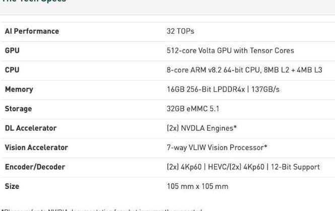 為了構建機器人應用程序,研發人員使用NVIDIA Isc軟件研發套件以及各種框架、工具、應用程序接口和數據庫來加速機器人算法和軟件的研發。Runtime frmework與Isc Sim緊密集成,后者專門為產品級人工智能驅動解決方案的研發而設計,旨在優化AGX Xvier解決方案。由于Jetson AGX Xvier模塊采用了不同的連接器引腳輸出和機電技術,因此該設備無法用于開發當前TX1和TX2的套件。模塊本身不能使用無線網絡或藍牙。研發人員將依賴第三方汽車聯網解決方案。Nvidia Jetson Xvier將徹底改變工業物聯網和邊緣計算技術。據外媒報道,英偉達發布了Jetson AGX Xvier,這是一款全新的人工智能芯片,可以驅動新一代機器人和自動機器。Jetson AGX Xvier可以提供無與倫比的計算能力,這正是高級人工智能應用迫切需要的。該芯片可以用作手持設備的工作環境服務器,功耗僅為10瓦。據英偉達介紹,Jetson AGX Xvier是世界上第一臺機器人專用計算機,集成了超過90億個晶體管(trnsistors),可以實現32個深度學習TOPS(每秒萬億次操作)。與上述Jetson TX2相比,其節能性能提高了10倍,性能提高了20倍。該芯片使機器人能夠在各種傳感器的幫助下了解周圍的世界。該芯片封裝有六個高性能處理單元,采用512核NVIDIA Volt架構Tensor core GPU,由8核Crmel ARM64 CPU和NVDLA深度學習雙加速器、圖像處理器、視覺處理器和視頻處理器組成。
