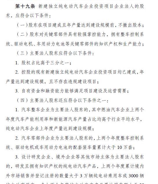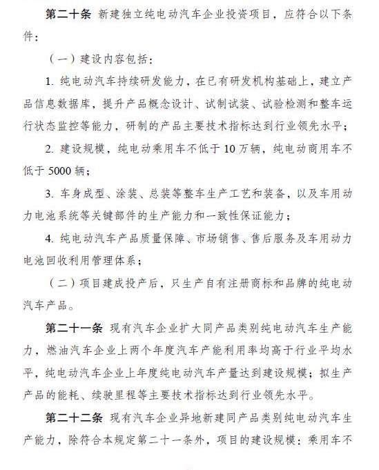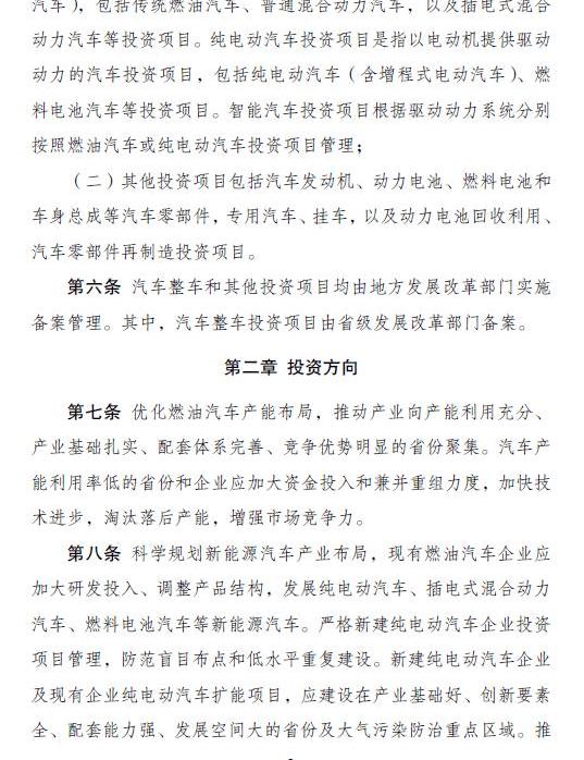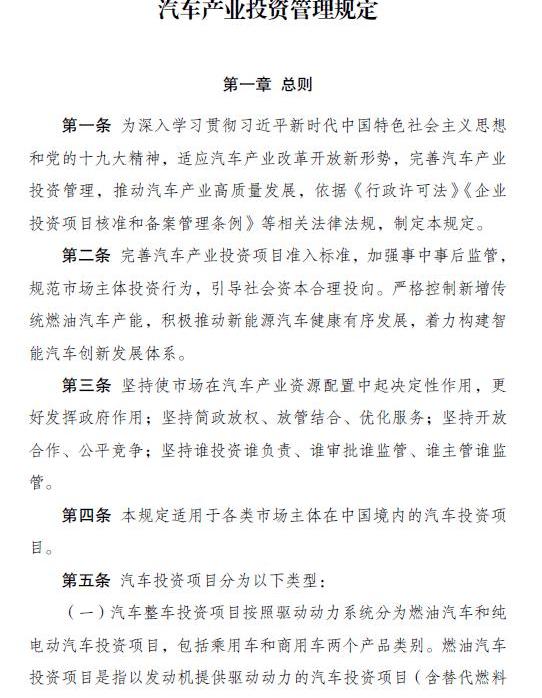 4據國家發展改革委消息,《汽車工業投資管理條例》已經國家發展改革委員會主任辦公會議審議通過,現已發布,自2019年1月10日起施行。根據通知,經國務院同意,《政府批準投資項目目錄》(2016年版)中的新建中外合資汽車生產企業項目和新建純電動乘用車生產企業(包括現有汽車企業跨類別生產純電動乘客車)不再實行審批管理,省政府批準的剩余汽車投資項目調整為備案管理。以下為全文:
