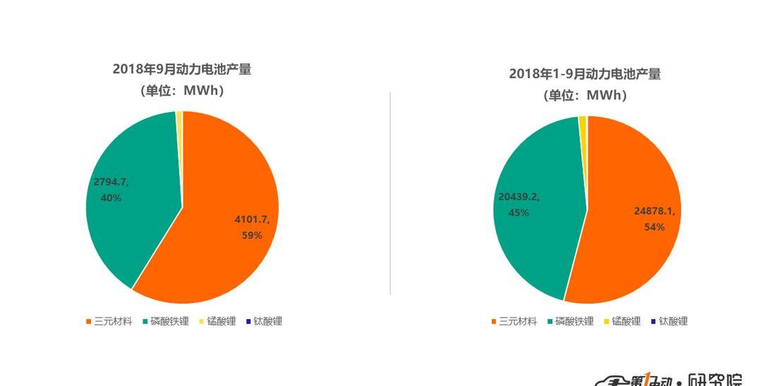 10月12日,中國汽車工業協會召開汽車行業信息發布會。大會同時,中國汽車動力電池產業創新聯盟發布了新能源汽車動力電池月度數據。此次公布的數據為:2018年9月動力電池產銷數據和2018年9月份動力電池企業生產集中度水平。從產量來看,9月份,中國動力電池產量總計7.0GWh,比上月增長4.2%,三元電池產量占比進一步提升。9月產量達到4.1GWh,占總產量的58.8%,比上月增長8.5%。磷酸鐵鋰電池產量為2.8GWh,占總產量的40.1%,比上月下降1.4%。1-9月,我國動力電池累計產量達到46.0GWh,其中三元電池累計產量為24.9GWh,占總產量的54.1%;磷酸鐵鋰電池累計產量為20.4GWh,占總產量的44.4%。
