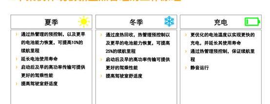“在炎熱的夏天,如果外界溫度超過40度,車內溫度應該調整到20度左右,駕駛體驗會非常舒適。在同樣的情況下,電池溫度應該降低到35度以下。如果電池溫度高,輸出功率就會低,汽車就無法正常工作。只有當溫度溫度在25度到35度之間,可以大大提高輸出功率和能量回收率。大陸動力總成集團中國區傳感器和執行器部門負責人Peter Biber進一步解釋說,這是因為電池在沒有熱管理系統或不完善的熱管理系統的情況下從高溫冷卻到20-35攝氏度或從冷態加熱到20-35華氏度,所需的電力由電池本身提供,這將極大地影響電池的整體耐久性。