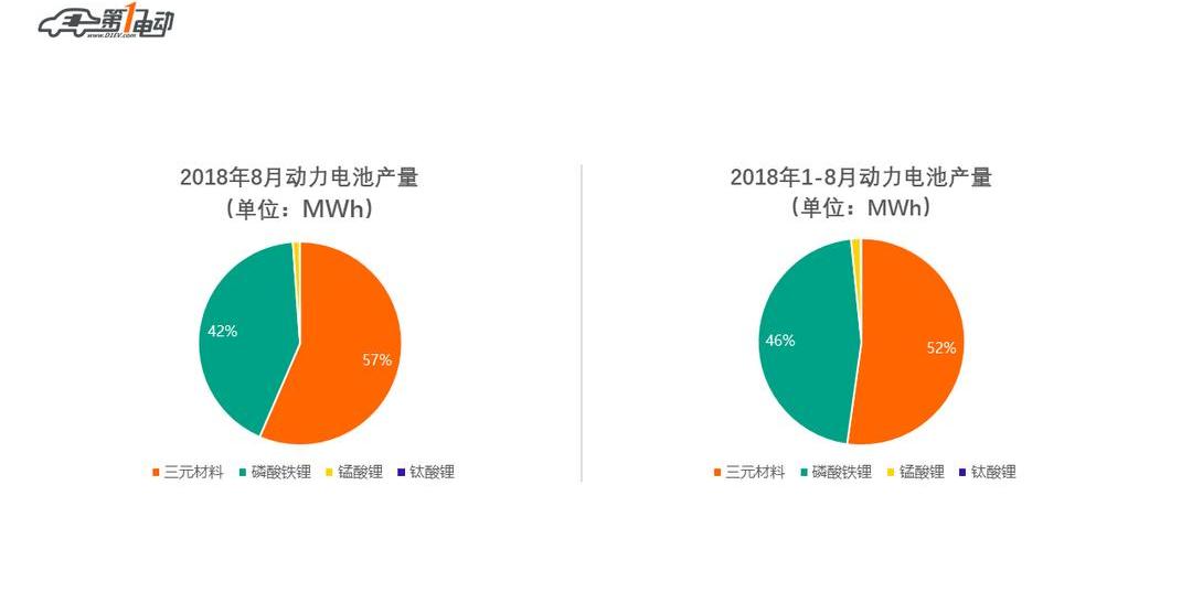9月11日,中國汽車工業協會召開汽車行業信息發布會。與此同時,中國汽車動力電池產業創新聯盟首次發布了新能源汽車動力電池月度數據。首次公布的數據為:2018年動力電池產量數據和2018年8月動力電池企業生產集中度水平。從產量來看,8月份,我國動力電池總產量為6.69GWh,三元電池和磷酸鐵鋰電池的產量占據絕對主導地位,其中三元電池產量為3.78GWh,占總產量的56.51%,磷酸鐵鋰為2.83GWh,占總產量的42.35%。1-8月,我國動力電池累計產量達到38.52GWh,其中三元電池累計產量為20.12GWh,占總產量的52.23%;磷酸鐵鋰電池累計產量17.78GWh,占總產量的46.17%。