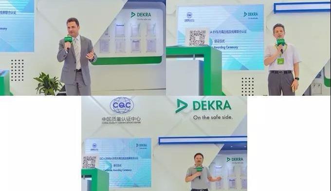 8月24日,由DEKRA和中國質量認證中心CQC聯合組織的電動汽車高壓線路和線束聯合認證儀式在上海國際充電站(樁)技術與設備展覽會(EVSE 2018)上成功舉行。中國質量認證中心副主任宋向東先生,國際電網中國電纜研究委員會副主任吳長順先生,德克拉德凱集團東亞區產品測試與認證總經理、東亞區開發總監Kilian Aviles博士出席認證儀式并致開幕詞。