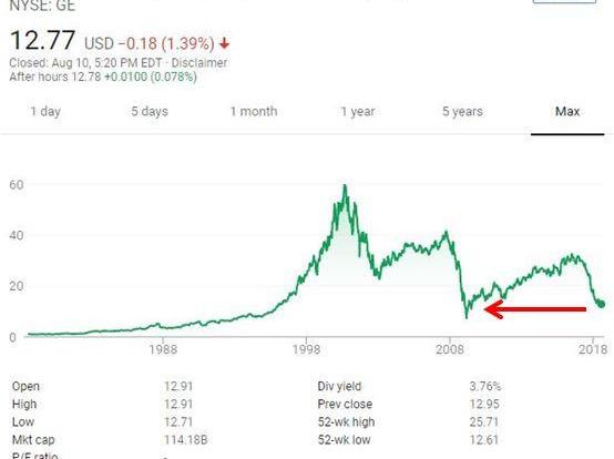 通用電氣的股價今年下跌了27%,2017年下跌了45%。自去年年初以來,其市值已經蒸發了1670億美元。6月26日,通用電氣被道瓊斯指數除名,道瓊斯指數在1896年成立時曾是道瓊斯指數的成分股之一。