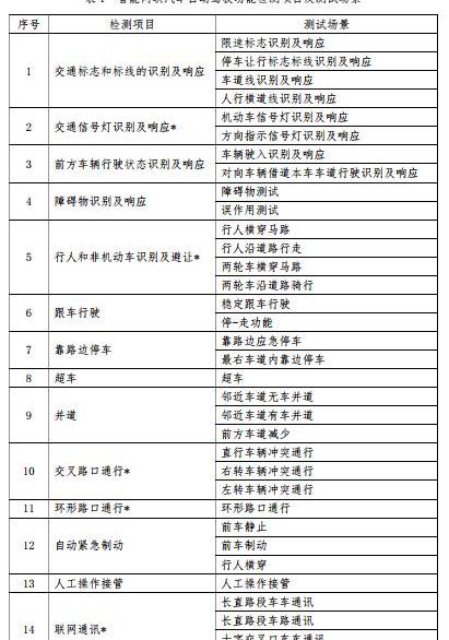 其中,對于選定的測試項目和場景(標有*),如果企業聲明其汽車具有相應的功能。