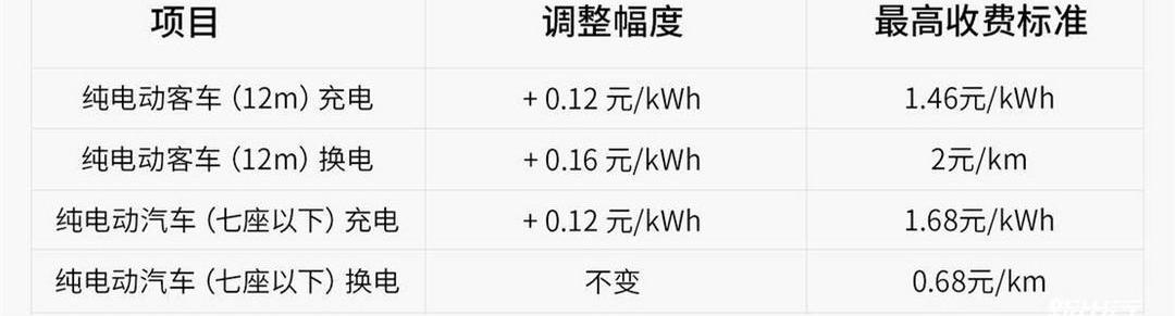 調整電動客車(12米)充換電和純電動汽車(七座以下)充電服務最高收費標準,分別提高0.12元/千瓦時、0.16元/公里和0.12元/度。調整后,電動客車(12米)充換電和純電動汽車(七座以下)充電服務的最高收費標準分別為每千瓦時1.46元、每公里2.00元和每千瓦時1.68元。(資料來源:南京市物價局)