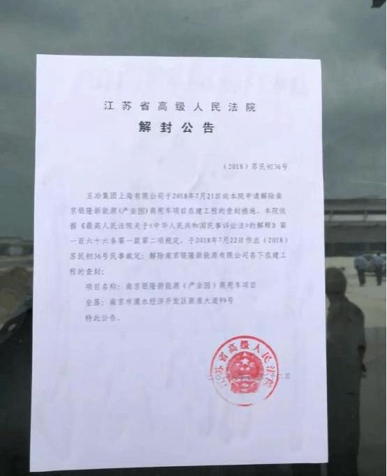 啟封公告內容顯示,五冶集團有限公司于2018年7月21日向江蘇省高級人民法院申請解除南京銀龍新能源(工業園區)在建商用車項目的封存措施,并于7月22日作出民事裁定,據此,撤銷了以南京銀龍新能源有限公司名義在建項目的封存。關于扣押原因,南京銀隆項目負責人何耀龍表示,“經公司調查,在部分項目的合作中,與合作單位現場人員在合同理解上存在分歧。雙方已通過友好協商解決問題,合作方已向法院申請解封,公司正在正常運營。“銀隆合伙人相關負責人也證實了上述說法,并表示項目合作將于下周一恢復。