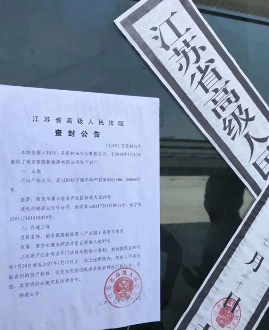 7月20日,南京銀龍新能源有限公司被查封的消息在互聯網上廣泛傳播。根據查封公告,2018年7月18日,江蘇省高級人民法院查封了南京市溧水經濟開發區新淮大道99號南京銀龍新能源(工業園)商用車項目的房地產,查封日期為2018年07月20日至2021 07月19日。