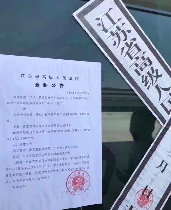 新能源汽車補貼的影響逐漸擴大。7月20日,一張被江蘇省高級人民法院查封的南京銀隆工業園區照片引發業內熱議。據了解,位于南京市溧水經濟開發區的南京銀隆新能源(產業園)商用車地產項目被查封。封存期為2018年7月20日至2021 7月19日。具體原因尚不清楚。