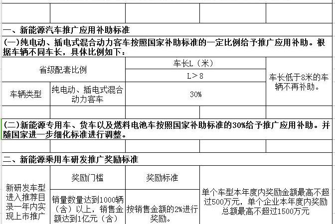 關于調整河南省新能源汽車推廣應用和充電基礎設施獎補政策的通知(征求意見稿)各省、直轄市,相關縣(市)財政局、科技局、工信局(委),發展改革委(能源局、辦公室):為深入貫徹落實黨的十九大精神,促進綠色發展,繼續實施大氣污染防治行動,促進我省新能源汽車產業健康快速發展,并加大充電基礎設施建設。為改善新能源汽車的應用環境,根據財政部、工業和信息化部、科技部的《通知》精神,《發展改革委關于調整完善新能源汽車推廣應用財政補貼政策的意見》(財建〔2018〕18號),結合我省實際,對省級新能源汽車的推廣應用和充電基礎設施獎補政策進行調整。現將有關事項通知如下:1。新能源汽車推廣應用補貼政策(1)補貼范圍納入國家。上述車輛必須符合財建〔2018〕18號文對汽車產品的技術門檻要求。(二) 省財政對消費者購買納入本次補貼范圍并在本省上牌的新能源汽車給予補貼。銷售新能源汽車產品時,新能源汽車生產企業按照扣除各級補貼后的價格與消費者結算,省財政將企業墊付的省級補貼資金按程序撥付給生產企業。(三) 補貼標準2018年省級財政按照國家補貼標準,按不同比例給予補貼。具體比例見附件1。省級、市、縣自行車補貼金額不得超過中央自行車補貼金額的50%。市縣出臺的補貼政策超過中央自行車補貼20%的,省財政只補貼中央自行車補貼的50%,扣除市縣補貼比例后的剩余比例。(四) 資金撥付流程省級財政補貼資金根據季度推進情況進行撥付。具體過程如下:1。每季度根據實際情況進行分配。2018年6月20日前,汽車生產企業應在2018年6月份11日前匯總全省新能源汽車推廣信息及相關證明材料(銷售發票、產品技術參數和車輛注冊信息),填寫附件2和附件3,經注冊地(或推廣地)新能源汽車推廣領導部門會同財政部門審核后,報省工業和信息化委員會審核。省財政廳應向汽車生產企業登記……