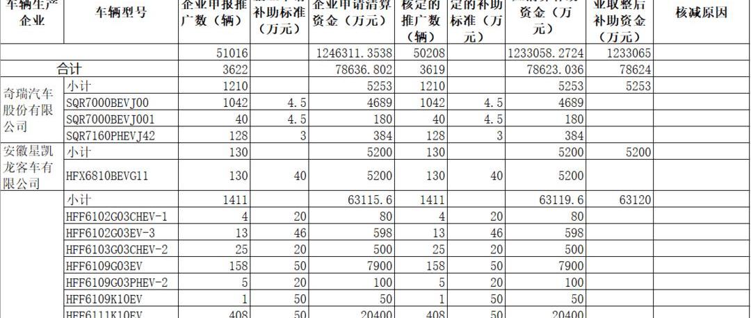 1 5月25日,工業和信息化部公布了《2017年及以前年度新能源汽車推廣應用補貼初審》。經審核,新能源汽車企業應在2016年和2017年清算約189.7億元補貼。2016年,申請晉升的新能源企業數量為51016家,企業上市資金為124.63億元,專家組批準的新能源公司數量為50208家,擬清算的補貼資金為123.33億元。減少的原因包括:電機型號與公布的參數不一致,行駛里程不足2萬公里;電池組制造商與公告參數不一致;該型號未進入推薦目錄;電池組的總功率和驅動電機的額定功率與公布的參數不一致;車輛Ehg大于0.7,不符合推廣應用補貼標準;電機型號與公布的參數不一致;驅動電機制造商與公布的參數不一致;車型的Egg值與推薦目錄的參數不一致,因此無法批準推廣應用的補貼金額;該批申報的車輛駕駛證登記日期不在2016年;電池組制造商與推薦的目錄參數不一致;