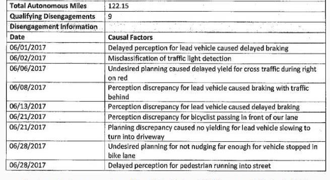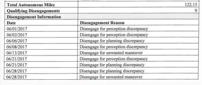 在新的報告中,“因規劃差異而脫離”改為“右側大灌木叢附近的不受歡迎的規劃導致車輛后方制動”。行人和騎自行車的人也是造成系統問題的原因。在所有“脫離”的情況下,駕駛員接管了對車輛的控制,實際沒有發生碰撞事故。