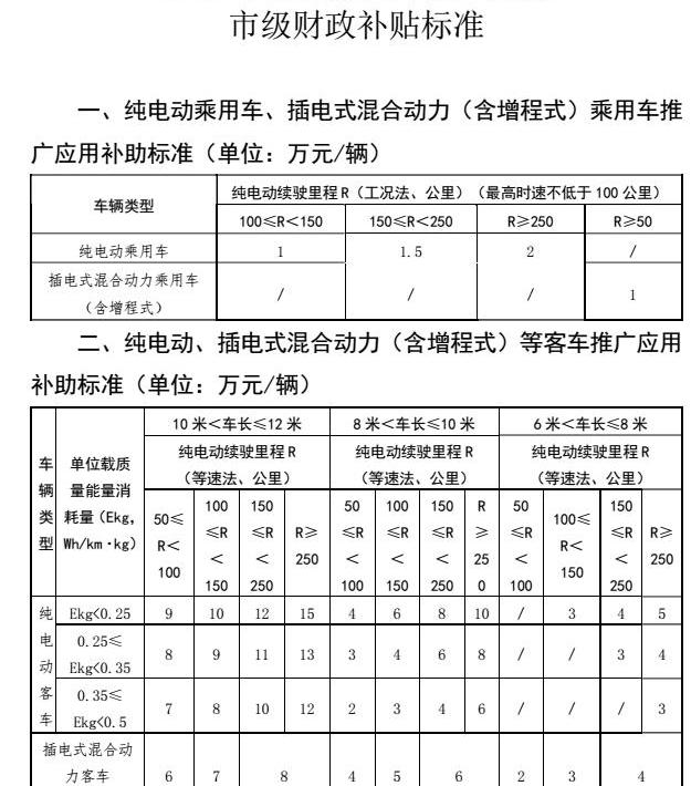 2016年,根據《關于申報新能源汽車推廣應用市級財政補貼的通知》(蘇京新產投〔2018〕14號)和市政府辦公室轉發通知《蘇州市2016年新能源汽車推廣應用市級財政補貼實施細則》(蘇府辦〔2017〕122號)等文件,現組織2016年新能量汽車推廣應用市財政補貼補充申請工作。具體申請程序和要求通知如下:1。補貼對象為2016年1月1日至12月31日期間購買、注冊(上牌)并納入《國家新能源汽車推廣應用推薦車型目錄》的純電動汽車、插電式混合動力汽車(含增程式)和燃料電池汽車。其中:私人消費者僅限于購買新能源乘用車。2016年,市政補貼要求車輛必須是蘇州市牌照。二、。應用要求1。申請補貼的主體是在蘇州工業園區管轄范圍內購買新能源汽車的公共部門消費者(企事業單位),以及向私營部門消費者銷售新能源車的銷售組織(4S店)。如果單個申報主體的多輛車符合補貼條件,則需要一起申報。2、購買新能源汽車供個人使用的單位,另需提供養老保險費清單。3.申報本次補貼,新能源車主必須簽署《信用承諾書》(單位需由法定代表人簽署)。三、 補貼標準市財政不同類型、不同型號的補貼標準和產品技術要求詳見《2016年實施細則》(附件7)。省市財政補貼總額不超過扣除國家補貼后車價的60%(以銷售發票為準),對閑置車輛不予補貼。使用財政資金購買新能源汽車的,不再給予購車補貼。四、申請材料首先,公共部門消費者申請補貼資金時,需要提交以下材料:1。市財政新能源汽車補貼資金推廣應用申請表(公有領域)(附件1);2.企業營業執照和組織機構代碼復印件;車輛購銷合同、購銷發票及其他文件復印件3份;(四)登記地部門核發的車輛登記證、駕駛證復印件;5.蘇州市(吳江區除外)車輛使用承諾書,5年內不轉讓車輛(附件3),市級財政專項資金申報信用承諾書(附件4);6.與車輛使用和車輛運營相關的資質證書,以及2016年車輛運營表(附件5);7.從事車輛租賃業務的企業需要提供相關資質證書,并確保用于租賃的新能源汽車正常安全行駛。8.車輛目錄批次和技術參數(由制造商蓋章);9.其他需要說明的材料。第二,汽車銷售機構(4S店)在申請私營部門補貼資金時,需要提交以下材料:1。新能源汽車推廣應用市級財政補貼資金申請表(私營部門)(附件2);2.汽車銷售機構(4S店)的營業執照和組織機構代碼復印件;