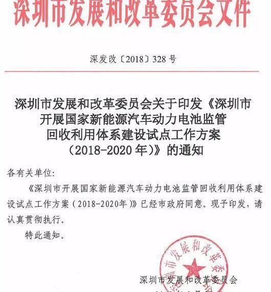 4月2日,深圳市發展改革委發布《深圳市國家新能源汽車動力電池監管回收體系建設試點工作方案(2018-2020年)》,深圳將在全市范圍內開展動力電池生產者延伸責任制的探索和實踐。到2020年,深圳計劃對納入國家和地方購買補貼范圍的新能源汽車動力電池進行全生命周期監管,規范動力電池的生產、使用、儲存、運輸、回收利用,建立相對完善的動力電池監管和回收示范體系,在全國范圍內形成可復制、可擴展的動力電池監管和回收經驗。主要任務包括:建立動力電池信息管理平臺,實施動力電池信息登記制度,完善動力電池回收保證金機制,加強動力電池回收……