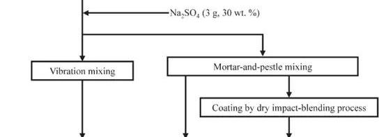 圖2。(a) NCM 111的SEM(b)Na2SO4的SEM顆粒分析表明,NCM顆粒的中位直徑為5.4μm,硫酸鈉的中位徑為0.95μm。NCM顆粒堅硬易碎,而硫酸鈉顆粒則具有相當大的韌性。作為混合導體,NCM是導電的,而硫酸鈉是不導電的。同時,通過壓痕試驗確認了硫酸鈉和硫化物電解質((75mol%li2s.25mol%p2s5)的機械財產。2.實驗方法和結果A.通過三種混合方法比較了不同的形貌:A.簡單振動混合B.研磨混合C.研磨混合后,采用沖擊混合干燥法進行涂層。如圖3所示。