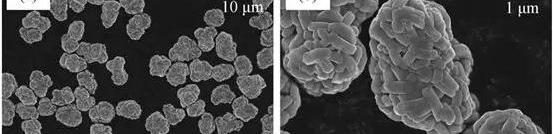 圖5。洗滌掉硫酸鈉后的C粉末的SEM圖像(a)在低倍率下(b)在高倍率下。