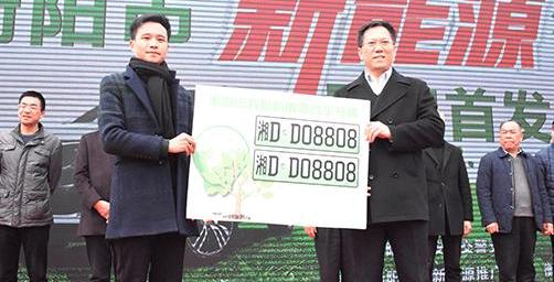 2月8日上午,在衡陽市新能源汽車號牌啟動儀式上,衡陽市副市長、市局局長胡志文為首批新能源車主頒發了新能源汽車牌照,標志著衡陽市首批“綠色”新能源汽車正式上市。