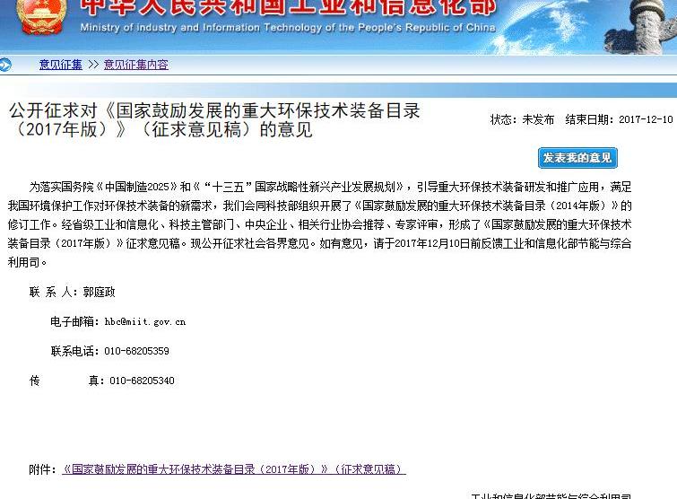 下載全文:《國家鼓勵的重大環境保護技術和設備目錄(2017年版)(征求意見稿)》