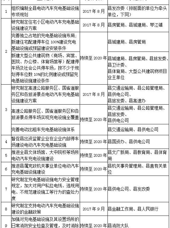 構建“互聯網+充電基礎設施”的可持續產業生態系統,培育一批具有較強市場競爭力的充電服務企業。第二,主要任務(1)堅持規劃和指導。全面落實《贛州市電動汽車充電基礎設施建設運營管理規定》,認真組織編制全縣電動汽車充電設施專項規劃,將充電基礎設施專項規劃內容納入城鄉規劃和配電網建設改造規劃,完善獨立充電基礎設施布局,明確各類建筑的停車場和社會公共停車場的充電基礎設施建設比例或保留建設安裝條件要求,加強與全縣國民經濟和社會發展“十三五”規劃的銜接,城鄉發展規劃和全市電動汽車充電基礎設施專項規劃。(2) 注意科學布局。新建住宅停車位100%具備充電基礎設施或預留施工安裝條件(包括預埋電力管道和預留電力容量,下同);新建2萬平方米以上的大型公共建筑(商場、酒店、醫院、辦公樓、體育場館等)設置停車場和社會公共停車場,按照不低于規劃停車位10%的比例建設或預留充電基礎設施建設條件;支持在已建或在建的住宅小區和大型公共建筑中建設停車場和社會公共停車場,通過改造安裝建設充電基礎設施;重點旅游景區和適合電動汽車運營的國家級、省級服務區應配備公共充電基礎設施;在不影響正常運營的前提下,鼓勵具備安全條件的加油站、加油站建設充電基礎設施;全縣公共充電樁和電動汽車比例不低于1∶15,在縣城主城區每6公里建設一座公共充電站。高速公路服務區、國家和省級服務區、旅游景區力爭到2020年實現充電設施全覆蓋;根據客戶的充電容量要求,按要求建設專用充電設施;自用充電設施按照充電樁與電動汽車的比例為1:1配置。(3) 建立一個健全的系統。為滿足電動汽車普及應用的需要,我們將通過建設“示范社區和示范單位”和“快速充電示范區”,加快在全縣實施電動汽車基礎設施建設,努力建設以用戶住宅停車場、單位內部停車場、公共交通和租賃等專用站點為主體的專用充電基礎設施,以城市公共建筑停車場、社會公共停車場和道路臨時停車位為輔助的公共充電基礎設施,以及具有獨立城市快速充電站和高速公路服務區的城際。(4) 探索操作模式。鼓勵通過政府-社會資本合作(PPP)等方式培育市場主體,引入社會資本建設和運營公共服務領域的充電基礎設施、城市公共充電網絡和智能服務平臺,優先支持與全市新能源車企開展戰略合作的市場主體參與充電樁建設和運營;鼓勵探索大型充電站與商業地產相結合的發展模式,引導商場、超市、影院等商業場所為用戶提供輔助充電服務;